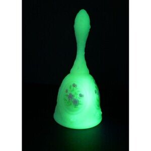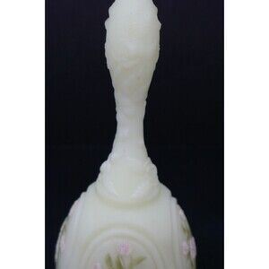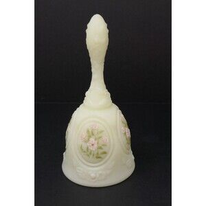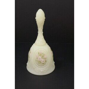 Fenton Satin Custard Art Glass Hand Painted Floral Flowers Design Bell