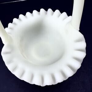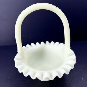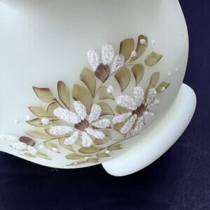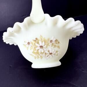 Fenton Satin Ruffled Basket Uranium Custard Glass Hand Painted Daisies - Signed