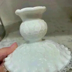 Fenton Silver Crest Candle Holders Spanish Lace Candlesticks Pair Art Glass VTG