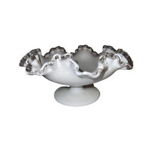 Fenton Silver Crest Milk Glass Bowl Dish 8”X4” Pedestaled Ruffled Vintage