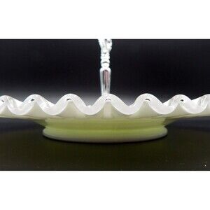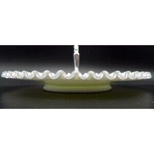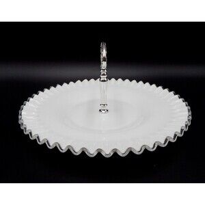 Fenton Silver Crest Milk Glass Tidbit Tray Platter Ruffle Crimped Edge 12 Inch