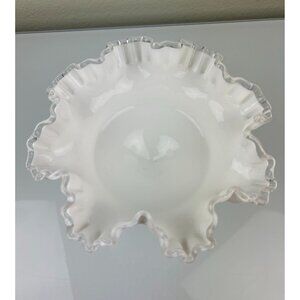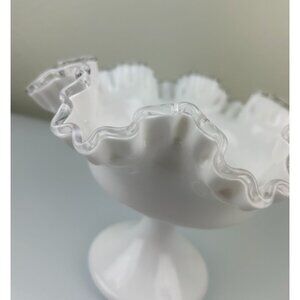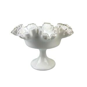 Fenton Silver Crest Pedestal Compote Bowl Clear Ribbon Ruffle White Milk Glass