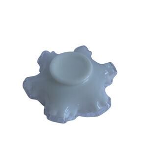 Fenton Style Opalescent Silver Crest White Glass Bonbon Candy Dish Vintage