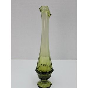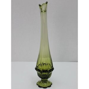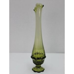 Fenton Swung Vase Petal Base Green 13 3/4 In Tall