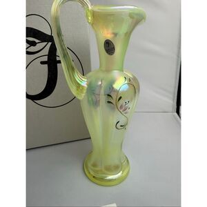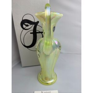 Fenton Art Glass 2001 Family Signature Series Topaz Opalescent Pitcher – Uranium Glass – Handpainted & Signed