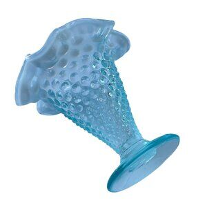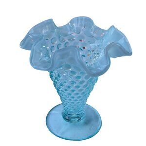 Fenton Vintage Light Blue Opalescent Hobnail Glass Vase Ruffled Edge Antique Dec