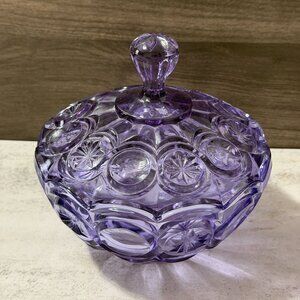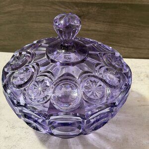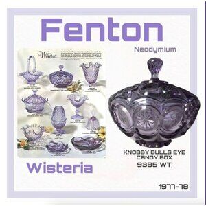 Fenton Vintage Neodymium Knobby Bulls Eye Candy Box Wisteria Covered Dish 9385WT