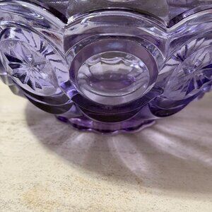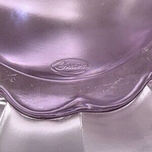 This round dish with matching lid is a rare piece of Fenton Wisteria Neodymium glass. The Wisteria collection was produced for a very short period between 1977 and 1978. We have included a screenshot of the original advertisement for the piece.