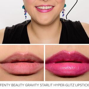 Fenty Beauty Gravity Starlit Hyper-Glitz Lipstick Hot Pink Glitter Swatched NIB