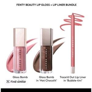 Fenty Beauty Lip Gloss And Liner Set Fu$$y Hot Chocolit And Bubble-tini Liner
