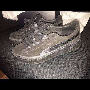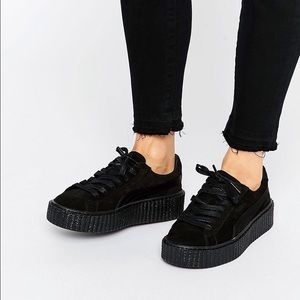 Rihanna's Fenty collab with Puma. Suede creepers in all black. Comes with satin ribbon shoe laces and regular shoe laces. Size 7.5 women's. Shoe is true to size. Never worn! $200 on Ⓜ️