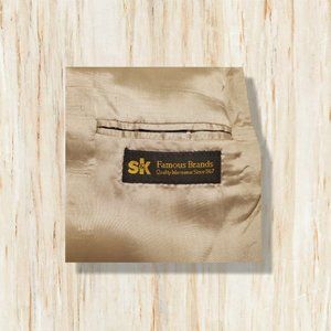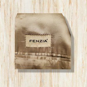 Fenzia sport coat size 40S, Shell 100% Wool Tweed, Lining 100% Rayon. Made in Israel. Three-button closure. Two flap pockets and a breast pocket in front; three inner pockets.