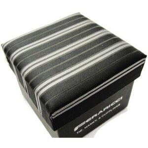 Feraricci Tie, Hanky & Cufflinks Matching Set Silver Tone Wedding Formal Tux IOB