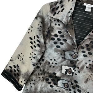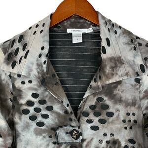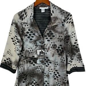 Feratelli Jacket Grey Black Button Front Top 3/4 Sleeve Women's S Artsy Boho