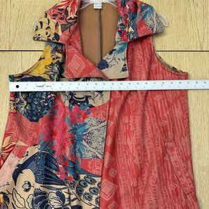 Feratelli Sleeveless Patchwork Vest Multicolor Floral Abstract Open Front M
