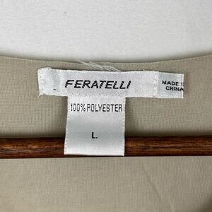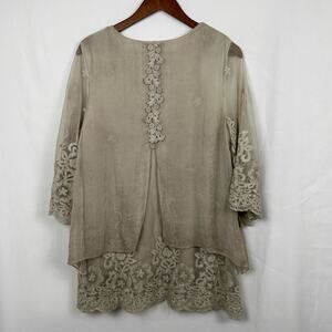 Feratelli Women's Top L Beige Embroidered Floral Layered Mesh Lace Lagenlook