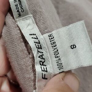 excellent condition no issues size small but runs a little big could fit small medium long sleeve asymmetric hem lace trim 3d floral detailing light dusty pink purple show stopper by feratelli