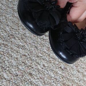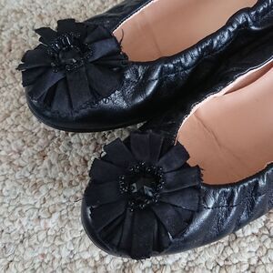 Beautiful Black Ballerina Flats Knotted flower at Toe of Shoe
