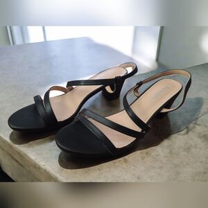Fereshte Black Matte Strappy Slip On Open Toe Block Heels - Size 8.5 / EU 40