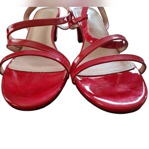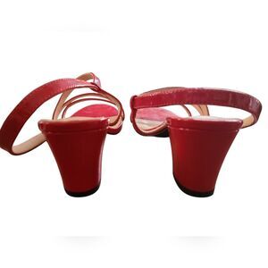 Fereshte Red Patent Leather Open Toe Strappy Sandals Block Heel Size 11.5 / 45