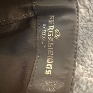 Stylish brown heeled boots by Fergalicious. Sleek and versatile design. Knee high heeled size 10