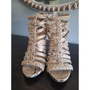 Fergalicious Faux Snakeskin Tan/Gold Hallucinate Heels/Pre-Owned,Size 6.5M