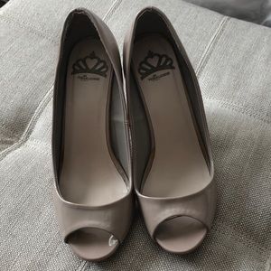 Cute nude peep toe heels, excellent condition excepting the few pictures scuffs