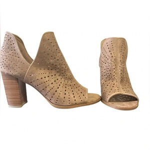 Fergalicious Shootie Boots Peep Toe Tan Suede Ankle Boots Size 9