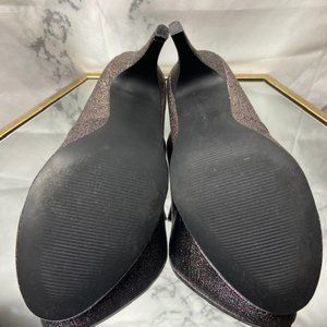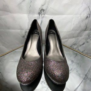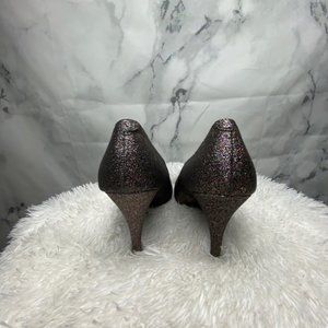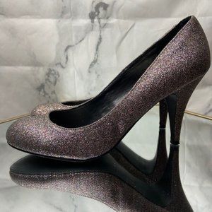 Gorgeous and fun high heels by "Fergie". Multicolor glitter with a silver & bronze undertone Approx 3.5" heel and rounded toe. No longer available in stores. All man made materials. Pre-owned in great condition. Size 9.