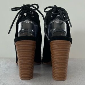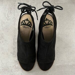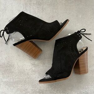 Fergalicious Women's Vorge Peep Toe Tie Back Laser Cut Bootie, Black 8