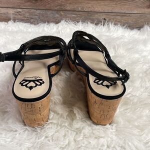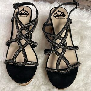 Fergalicious by Fergie Strappy Rhinestone Cork Wedge Black Dress Shoes Size 9