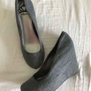 Fergalicious wedged pumps, gray felted suede, size 8, worn once