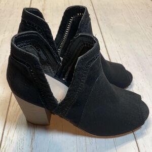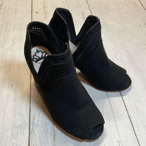 Great condition. No flaws. Black micro suede material. Slip on design. Chunk heel. Rubber nonslip soles. Open toe. Smoke free home. Same day shipping. Monday through Saturday. Open to reasonable offers.