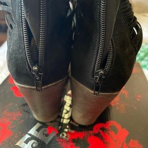Wicket style boot! See photos for wearing of heel, about 3 inches tall. Used!