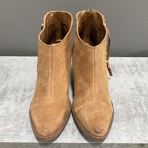 Fergie Bennie Tan/Brown Suede Leather Fringe Beaded Ankle Boots/Booties Size 6.5