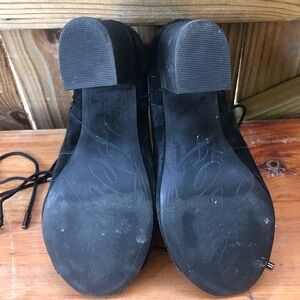 Fergie Black Suede Riviera Open Toe Lace-Up Stacked Heel Booties