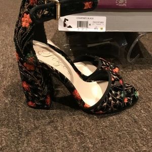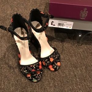 Fergie Courtney Black Floral with ankle strap size 6 1/2 like new in excellent condition
