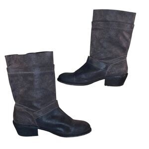 Elevate your style with these chic gray leather boots from Fergie. Perfect for fall! They are a pull on style with adjustable buckle and zipper detail.