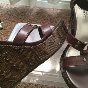 Brown summer wedge by Fergie shoes. Size 7.5. Still in great condition.
