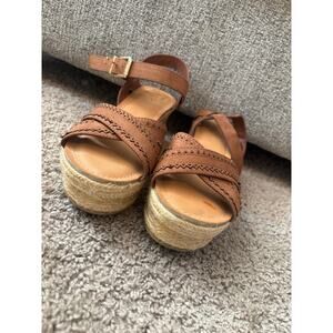Fergie Suede Size 9 NWT Brown Leather 3” Wedge Cork Bottoms