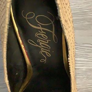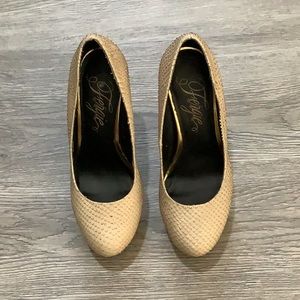 Fergie Round toe tan platform with snake skin pattern Size 6M