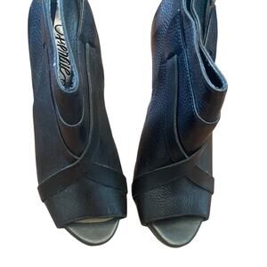 Killer Fergie black leather peep toe bootie heels size 6.5