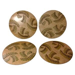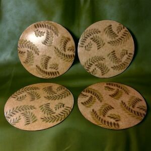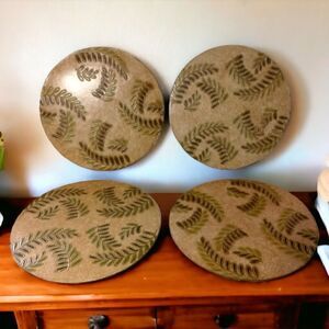 Fern Leaf Round Placemats x 4 PINO Fine Paper Creations Tropical Textured Beach. Condition is pre-owned and vintage. Measures about 13" in diameter. Made by PINO Fine Paper Creations in the Philippines. Fern Leaf tropical pattern on a neutral background. They do not bend , have some minor surface wear. Please see all photos for detailed condition.