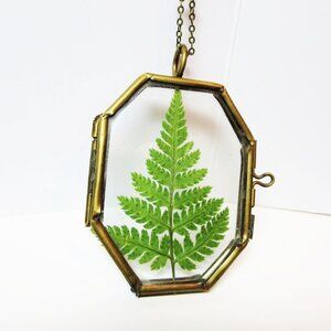 Fern Necklace Pressed Fern charm dried ferm Terrarium pendant Botanical locket