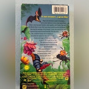 FernGully VHS movie of an animated bat and characters in a jungle setting. Vibrant and playful design.