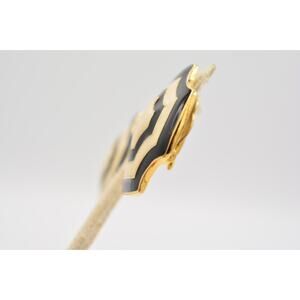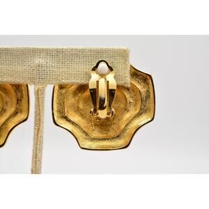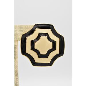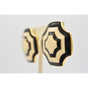 Fernando Vintage Clip Earrings Black White Enamel Gold Chunky FO Signed 80s Bin8