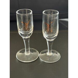Fernet Branca Vintage 2 Stemmed Shot Glasses Gold Logo Pair Set Stem Bar Rare
