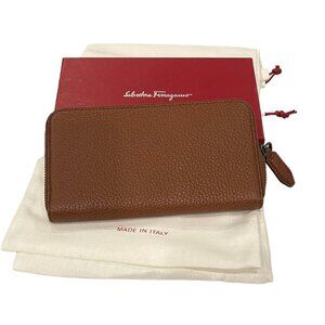 Ferragamo 66-0907/02 Men's Brown/Blue Leather Continental Travel Wallet