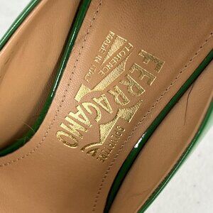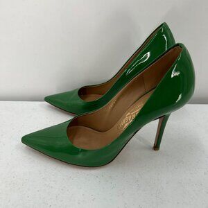Ferragamo 8 Green Patent Leather Pointed Pumps