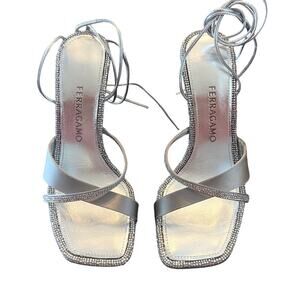 Ferragamo Allegra Crystal Embellished High Heel Sandals Wrap Ankle Size 7.5 NEW